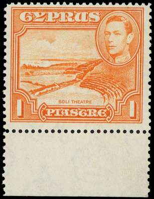 1944 1pi orange perf 13½ x 12½ lower marginal example, fine unmounted o.g. SG 154a, £550