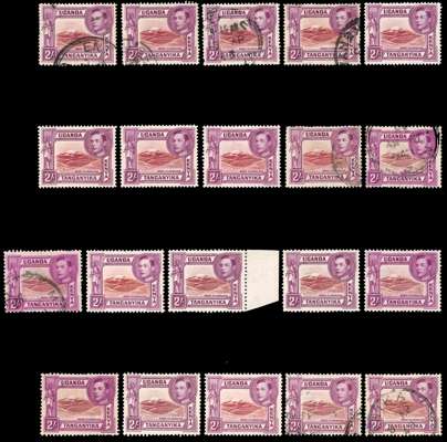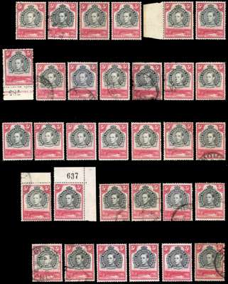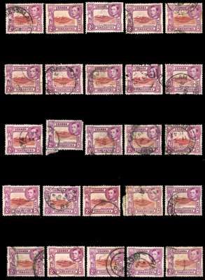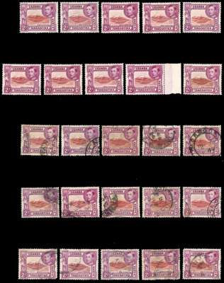 1938-54 2/- mint and used collection on stockpages with SG 146 x 7 mounted mint (good shades), and four perf 14 mint (two unmounted). Perf 13¾ x 13¼ with three blocks of four (two unmounted), Plate 1-4 pair with lathework, four further pairs and two singles. Also a number of used in each perf. SG 146, a, b