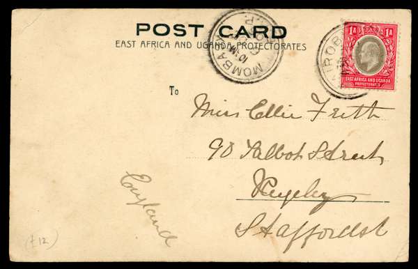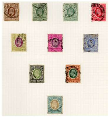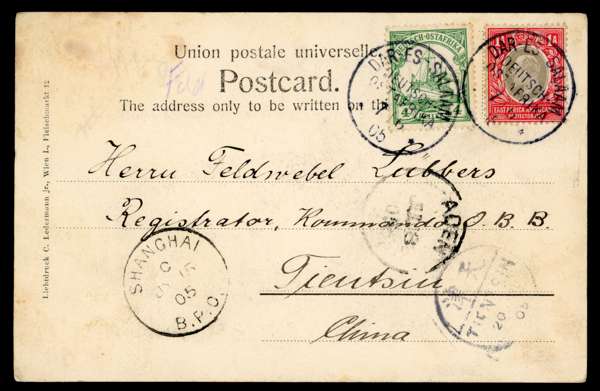 1903-10 KEVII mint and used collection on album leaves, 1903-04 wmk CA & CC part set to 10r, 2a dull & bright purple used with wmk inverted, 1904-07 wmk MCA values to 10r, few covers with 1905 postcard from Dar-Es Salaam franked by 1a grey & red, and German East Africa 4h addressed to Tientsin, with Shanghai B.P.O arrival JY 15 O5, 1907-08 set and 1910 6c red re-drawn, generally fair to fine condition.