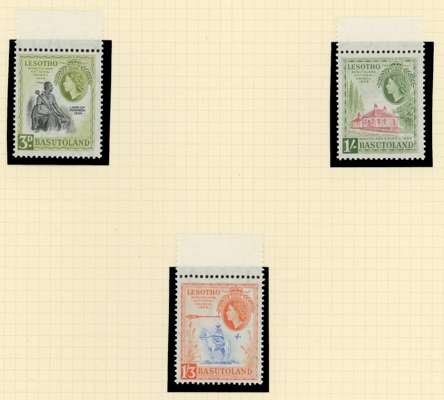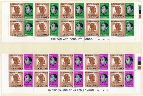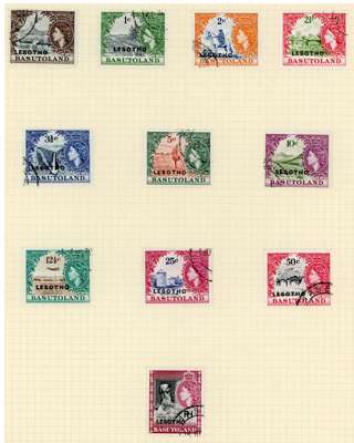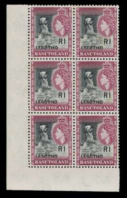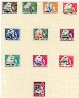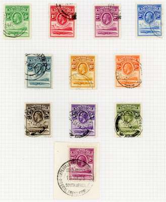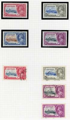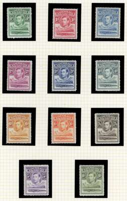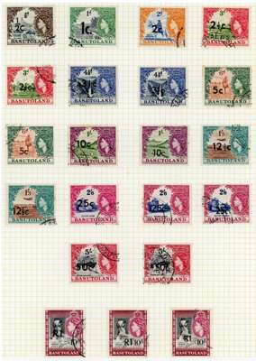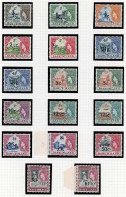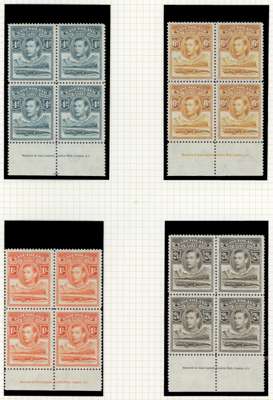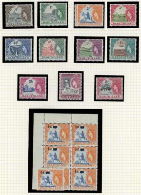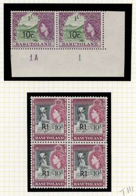 1933-70 mint and used collection arranged on album leaves including 1933 to 10s (2, one used), 1938 to 10s (2, one used) and imprint blocks of four to 2s6d, 1954-59 to 10s (2, one used), 1961 New Currency to 1r on 10s with 10c on 1s (type II), right marginal plate number pair, (mounted on one stamp), used single and 1r on 10s (type III), block of four, 1961-63 to 1r. Mostly good to fine. (hundreds)