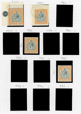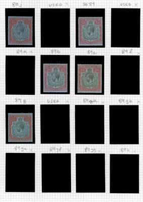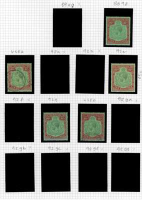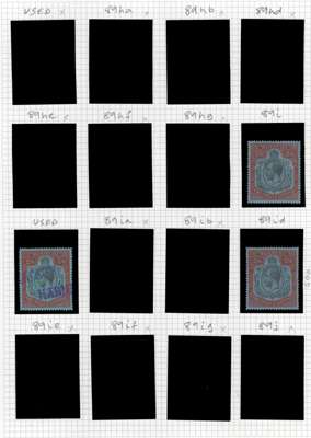 1924-32 2s to 12s6d, Script wmk, mint and used range on leaves, comprising basic set of 4 mint (12s6d from upper left corner with plate number), a few shades and selection of varieties inclg Break through Scroll (2s6d), Broken Crown and Scroll (2s6d, 12s6d), Break in lines below left Scroll (2s6d, 10s), and Damaged leaf at bottom right (12s6d), cond varies. SG 88/93, £6500+ (23)