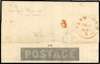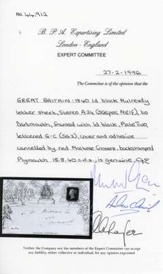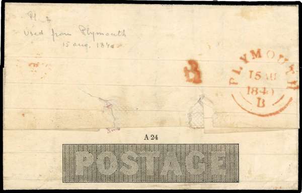 1840 1d Mulready Lettersheet (Forme 2, Stereo A24), uprated by 1d black Plate 2 (GC) four good margins, both cancelled by red MC's, addressed to Dartmouth, backstamped by Plymouth cds for AU 15, lovely quality and rare. BPA Certificate (1996). SG ME1