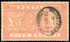 1867-83 £5 orange (DK), cancelled by ‘REGISTERED/12 NO 97/LOMBARD ST' oval ds; creasing and other minor imperfections. A collectable example. SG 137