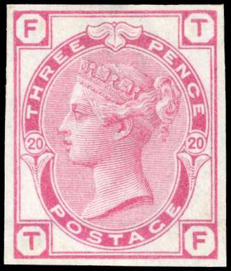 1875 3d rose plate 20, watermark spray, imperforate imprimatur lettered ‘TF’, very rare, one of only 22 possible