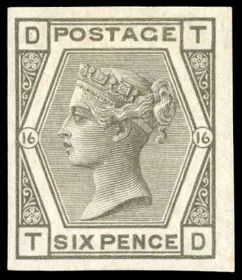 1875 6d grey, plate 16, imperforate imprimatur (TD), fine large part og. One of only 22 possible examples, SG 147var