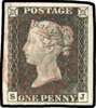 1840 1d black, plate 1A (SJ), good to huge margins, lightly cancelled