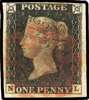 1840 1d black, plate 7 (NL) smudged red MC, 4 margins, close at top SG 2