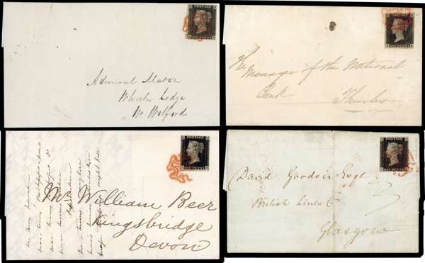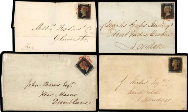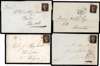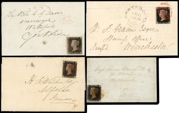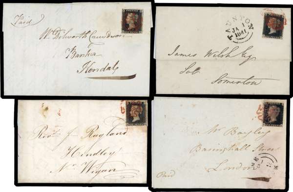 1840 a selection of 26 entires or covers bearing unplated 1d blacks, mostly good to fine with 3 to 4 margins with assorted