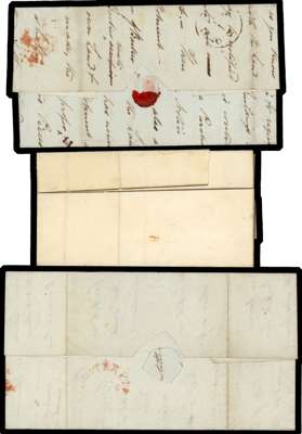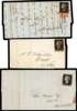1840 1d black unplated selection of six entires/entire letters all cancelled by red Maltese Cross