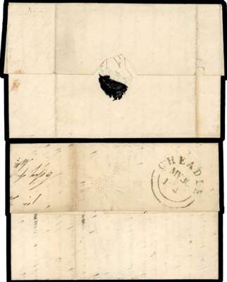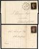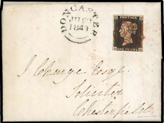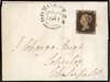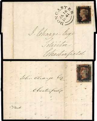 1840 1d black unplated selection of six entires/entire letters all cancelled by red Maltese Cross, five addressed to Chesterfield and one to Nottingham, and four with all margins, a couple a little close, and the rest two/three margins. Condition very mixed. (6)