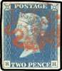 1840 2d blue Plate 1 (RH) four close to large margins, struck by red MC, fine with good colour. SG 5