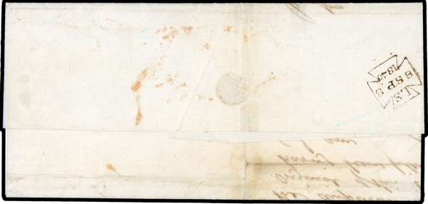 1840 2d blue horizontal strip of 3, plate 1 (JH/JJ), trimmed at foot, on entire to Basingstoke, tied by indistinct red MC, reinforced with archival tape still most attractive SG 5