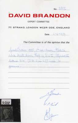 1855 1d red-brown Pl. 26 (RH, Wmk. Small Crown, Die II, Alphabet III, Perf 14), used example cancelled by a Bath ‘53’ numeral, with a few short perfs, otherwise an attractive example. Brandon Cert (1979). Spec. C7(1), £850