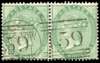 1857, Emblems, 1s green, horizontal pair, lightly cancelled