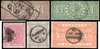 1867-92 used selection of high values on a stockcard including: 1867-83 5s rose (wmk. Maltese Cross), £1 brown-lilac (wmk. Maltese Cross) cancelled by a bold Glasgow cds for MY 2 82, £5 orange (white paper) cancelled by a Glasgow cds for MR 27 95, 1884 £1 brown-lilac struck with a Miles Plating cds for NO 14 89 and rectangle box cancel, 1887-92 £1 green used by an oval registered cancel. Slight imperfections but still attractive examples of these popular stamps. btwn SG 126-212 (5)