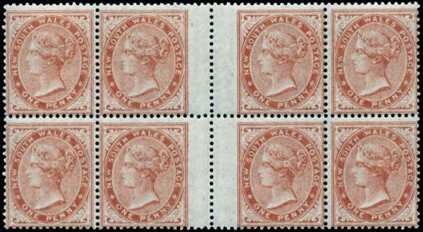 NEW SOUTH WALES 1862 SG187 Mint 1d dull red no watermark interpane block