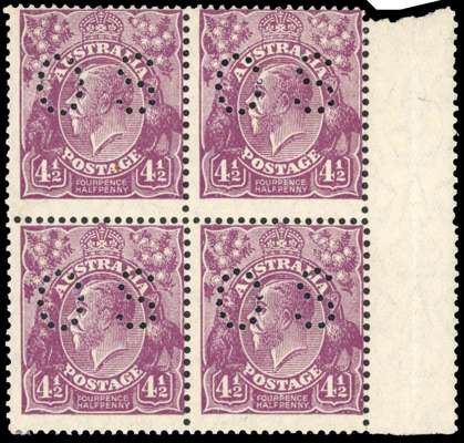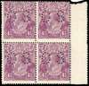 AUSTRALIA: 1926-30 4½d violet block of 4 with gutter margin at right, centred to top still, fresh unmounted o.g. SG O109