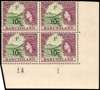 1961 10c on 1/- bronze-green and purple Plate 1A-1 block of four, unmounted o.g., gum evenly toned. SG 64a, £1000