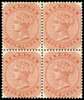 1904 4d orange-brown block of 4 with watermark reversed, light crease affecting top pair. A rare multiple as only 3 blocks recorded, fine o.g. SG 28ax £2,000