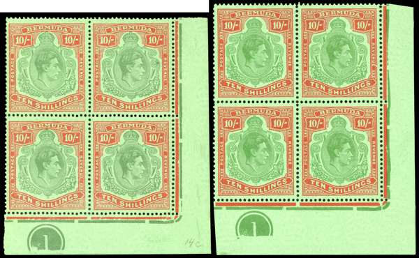 Bermuda SG 119d, f Plate blocks mint