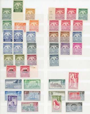1938-50 definitives, mint. 1938 set with perfs including ½d perf 14 and 1d scarlet perf 13½ x 13. 1½d perf 13½ x 13 is SG 231da, 1s two shades of SG 255a, no 2½d ultramarine but with an additional block showing R3/3 mark on ornament. Also 1947 1d on 2d both perfs and 1950 set of twelve. SG 248/282, £579
