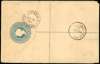 1897 2d registered postal stationery envelope to Nova Scotia. uprated with a pair of 1893 1s green perf 14 x 12½, tied by partial Hamilton CDS of FE 13 97, another strike alongside. Backstamped Halifax. Scarce and attractive. SG 11