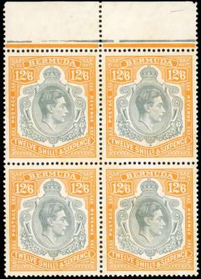 1939 (Jul) 12/6d upper marginal block of four, unmounted o.g. HPFs #10a, 21d two dents in upper left scroll. SG 120b, £440