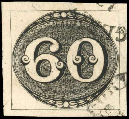 Bull's Eye: 1843 Clear Impression 60r, four good even margins, white paper fine used with part two datestamps