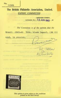 Slanting Figures: 1845-46 Early Impression 300r with huge bottom margin, others clear, small part red postmark ink at right; a fine-looking example, BPA Certificate (1965)
