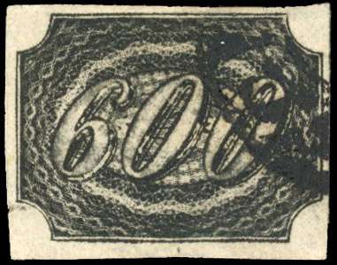Slanting Figures: 1845-46 600r thin yellowish paper, four good to large margins fresh used with part framed cancel.