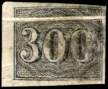 Vertical Numerals: 1850 300r. pre-printing horizontal paper fold at top of stamp, four close to good margins
