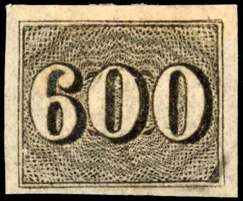 Vertical Numerals: 1850 600r, yellowish paper, four even margins fresh large part hinged o.g.