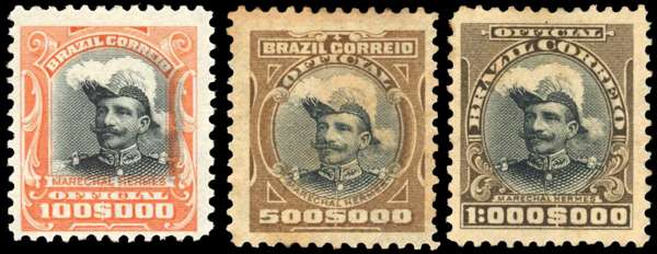 Brazil 1913 Official 100,000r, 500,000r and 1,000,000r hinged moint