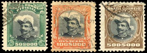 Brazil 1913 Official 50,000r, 100,000r and 500,000r used