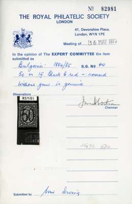 1884/85 50 on 1f black and red fresh unused without gum, RPSL Cert (1973)