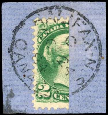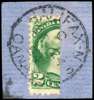 Canada 1870-90 2c grass-green bisected used on piece. SG 78c