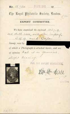 1857-59 4d dull rose watermark Star, imperforate with good to large margins, lightly used, very slight thinning as mentioned on otherwise clear RPS Certificate (1932); fine appearance. SG 4, cat £4500