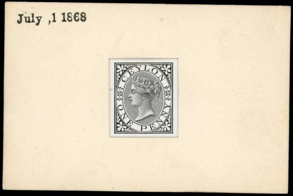 Ceylon SG 61 1868 1d Die Proof in black with cardboard surround