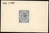 1868 (July 1) 1d die proof in black on glazed card (92x60mm) with clear mica cover and overlaid with cardboard surround which is dated at upper left, superb and rare, not recorded in this form by Kimmel and Pearson. SG 61