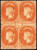 1867-70 10d red-orange watermark CC (type 6) block of 4, mint large part o.g., a fine multiple. SG 70b, cat £360+