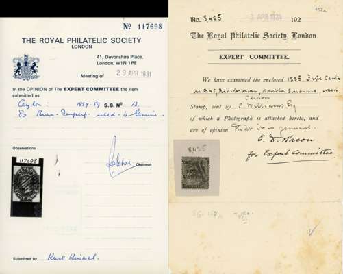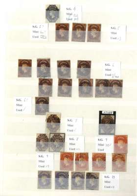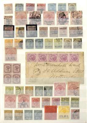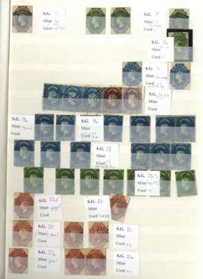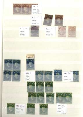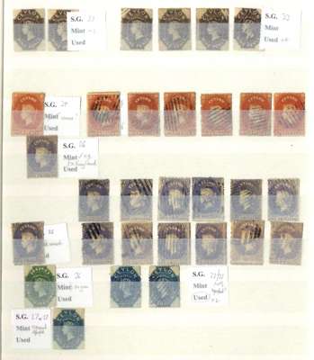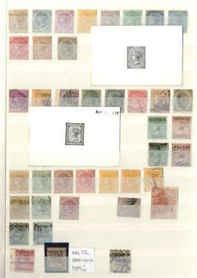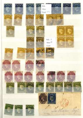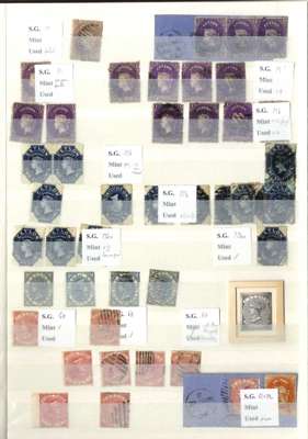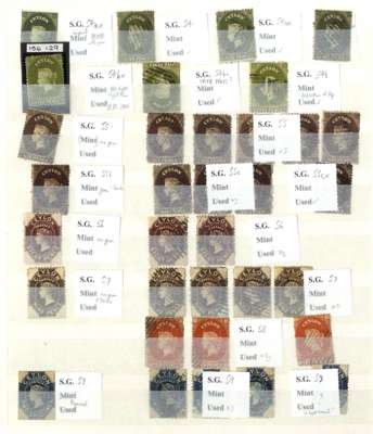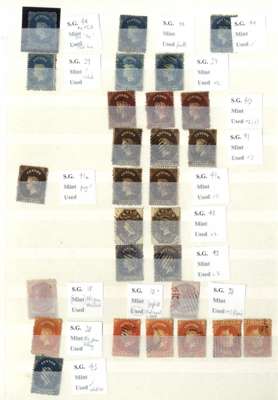 A valuable collection in stockbook to 1900 with strength in the Pence issues, commencing with 1857 6d used (2) plus plate proof strip of 3, then 1857-59 values including 8d (RPS Certificate) and 9d used and several unused including 5d, 10d and 1s9d (2), 1861-64 to 2s used including shades plus 4d clean-cut perfs and 6d deep brown rough perf unused (also 2s clean-cut perfs, but reperfed and regummed), similar ranges of 1863-65 and 1867-70 issues to 2s noting 1863-66 5d watermark inverted and reversed, 4d rose, 5d watermark reversed (RPS Certificate) all unused and 1867-70 2d block of 4 unused, and 1866-68 3d stamp-size die proof, then various later including 1872-80 16c and 64c die proofs and unused set to 96c plus various surcharge issues including 1885 5c on 64c surcharge double (RPS Certificate) and 28c on 48c surcharge double (BPA Certificate) used, also small range of postal history, very mixed condition throughout though with useful duplication, close inspection strongly recommended. (Few hundreds)