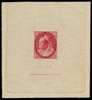 1898-1902 3c die proof in carmine (issued colour) on India paper (68x74mm) showing complete die sinkage on three sides (except at top) with Die number 'F-113' and complete 'AMERICAN BANK NOTE. CO. OTTAWA' imprint below. Small corner crease at top right, bearly detracts. Attractive SG 156var