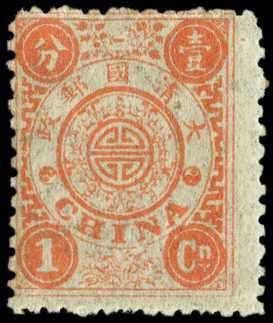 1897 60th Birthday of the Dowager Empress, second printing 1ca salmon-red, centred to upper left, large part o.g., scarce