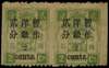 1897 Small Surcharge on Dowager 1st printing 2c. on 2ca. green horizontal pair, variety "imperforate vertically" mint large part o.g., some patchy gum toning but this barely visible from face visible, a rare and seldom offered variety SG39a Chan 39g