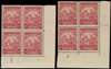 1943-4 2d carmine two Plate 1 blocks, perf 13½ x 13 and 14, unmounted o.g. Each with R11/9 'extra line'. SG 250da, ea, £110+