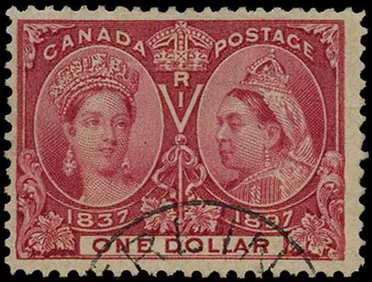 1897 Jubilee $1 lake, fine used with part CDS....
