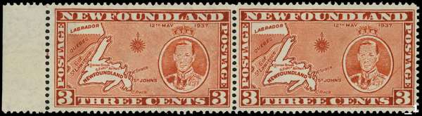 1938 3c Die II marginal horizontal pair, with and without watermark, unmounted o.g. SG 258ea, £200