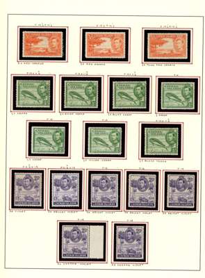 1937-50 mint collection (180), principally a study of shades of the 1938 set with strength in the high values; 2/- x 12 (10 unmounted), 5/- x 12 (10 unmounted, mostly the second shade) and 10/- x 14 (10 unmounted). Plus the other KG VI issues unmounted, the 1950 set x 2, one set with matched part imprints