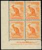 1937 ½d orange McCracken imprint block of four large part o.g., showing cracked plate (first line of imprint, later state). SG 164, ASC 178zba, $500