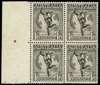 1949 1/6d blackish brown left marginal block of four showing most of Plate 1 at left, large part o.g., some stray black marks (probably printing ink) on the reverse of the lower pair otherwise fine. SG 223a, ASC 261z, $500